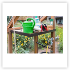 Hartglas gehört bei diesem Gewächshaus zur Norm, sowie eine gute Belüftung u. a. durch Aufstellfenster, ein integriertes Alu Fundament, (also keine Holz, das den Boden berührt) sowie Dachrinnen und Fallrohre. Sehr praktisch sind auch die von uns individuell gefertigten klappbaren Pflanzregale sowie Pflanztische. Diese können selbstverständlich auf Wunsch dementsprechend von uns Maßgerecht angefertigt werden.