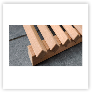 Wer vom Feld oder aus dem knietiefen Garten mit Gummistiefeln voller Matsch und Steinchen nach Hause kommt, der wird diesen Schuhrost aus Holz zu schätzen wissen. Nicht nur, weil die neun scharfkantigen Leisten zuverlässig die Anhaftungen entfernen, sondern weil der Fußabtreter auch sehr schön ausschaut.