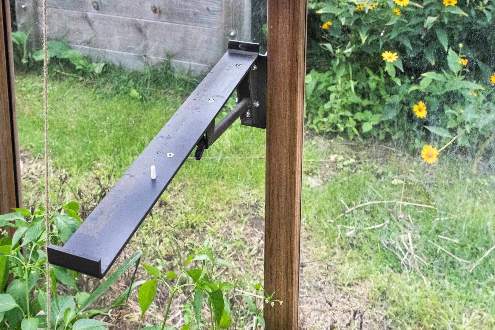 Die klappbare Einstiegshilfe selbst ist mit einer speziellen Gewindeschraube fest mit der Wand verbunden, sprich es gibt kein klappern und kein wackeln. Beim ausfahren der Treppe einfach die Gewindeschraube lösen und die Treppe über die montierten Scharniere Ausfahren. Da die Treppe fest auf den Boden aufsteht, wackelt und klappert auch hier absolut nichts.